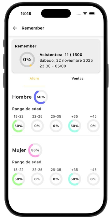 Gestiona tu discoteca con total control, desde la creación de eventos hasta el acceso y el análisis de resultados.